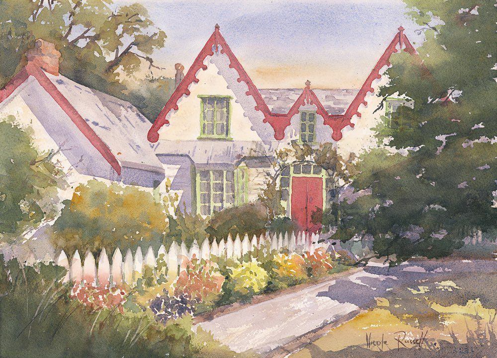 I enjoyed creating these artworks as they connect to community and ancestry. These buildings fascinated me because they were constructed with the materials found in the area, often beautiful wood and stones, rocks. Also, I enjoyed reading up on the history of the buildings and their owners. It enriched the connection to my neighbourhood. I have always believed that beauty, strength and guidance are influenced by our surroundings, the present and the past. Historic structures are witnesses of life, love, whanau, pride, ambitions and connection to the land. They are witnesses of time, and experiencing them can fill you with pride for your ancestry and strength for your future.