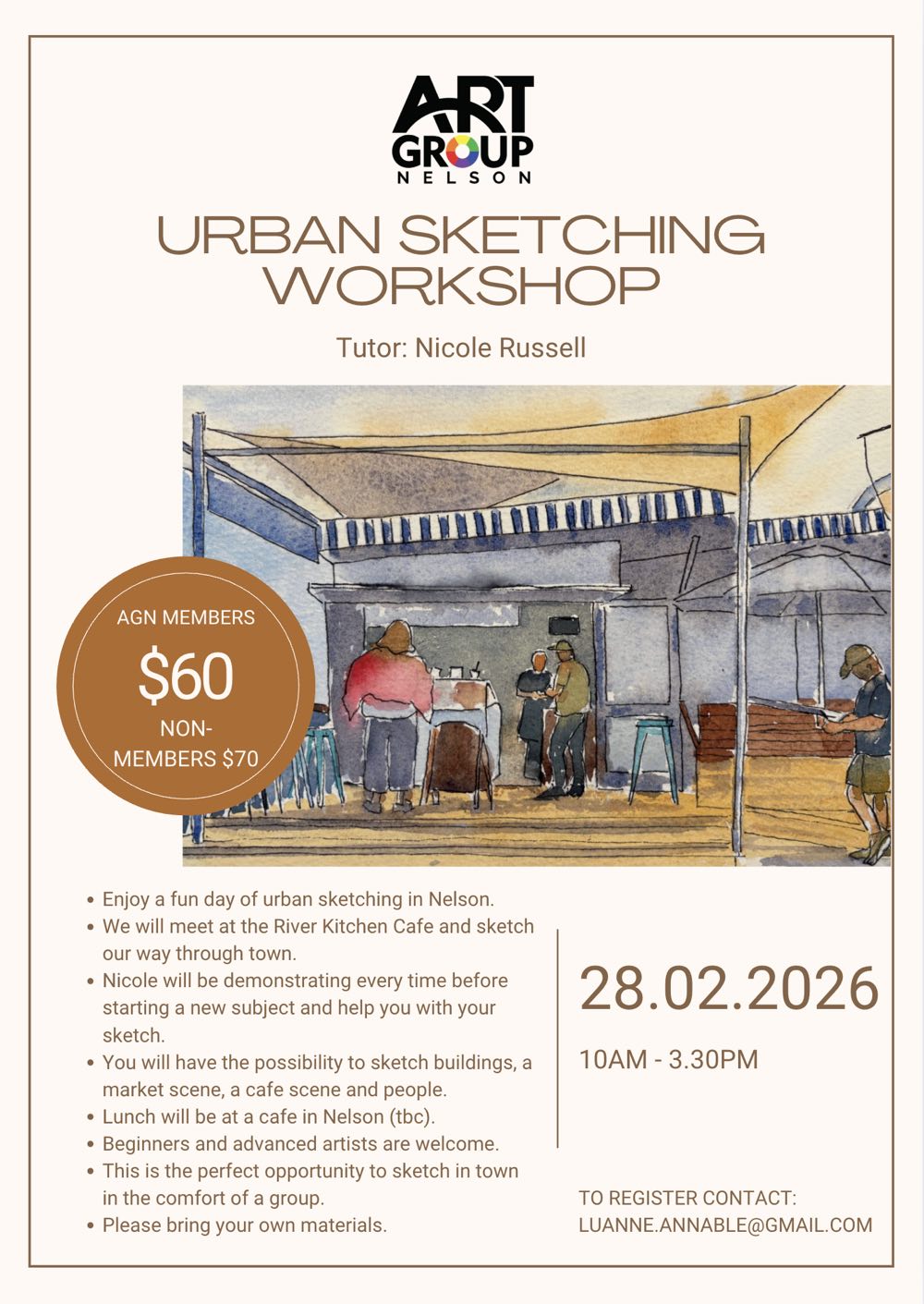 Only a few more days until the workshop. Brushstrokes of the Wild Painting Trees in the Landscape 1-Day Workshop - All Mediums are welcome! Date: Saturday 23rd August – 9:30am – 3:30pm Location: Bridge Rooms, 32 Tudor Street, Motueka Tutor: Nicole Russell Cost: $60 Motueka Art Group members, $70 non members During this 1-Day workshop you will explore the structure, tonal value and colour of trees. We will also talk about the importance of trees in a landscape to create…